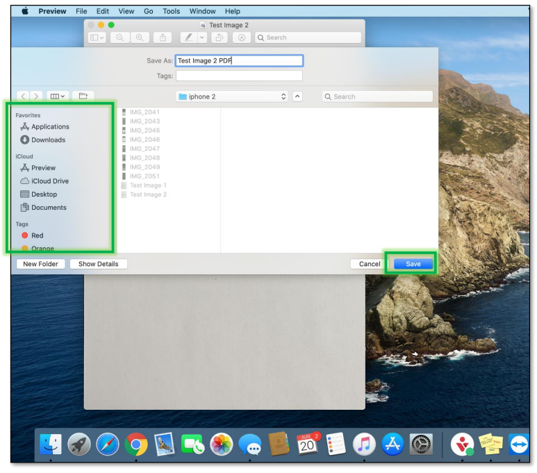 Choose where you want to save the PDF on your Mac, then select Save in the bottom-right corner.